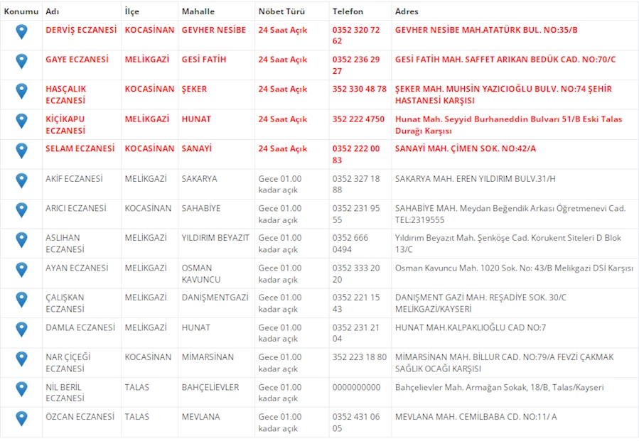 Kayseri'de vatandaşların acil sağlık ihtiyaçları için nöbetçi eczaneler önemli bir yere sahip. Kayseri’nin bugünkü nöbetçi eczanelerini sizler için derledik. 17 Ocak Cuma nöbetçi eczaneler listesine buradan ulaşabilirsiniz. İşte 17 Ocak nöbetçi eczaneler…