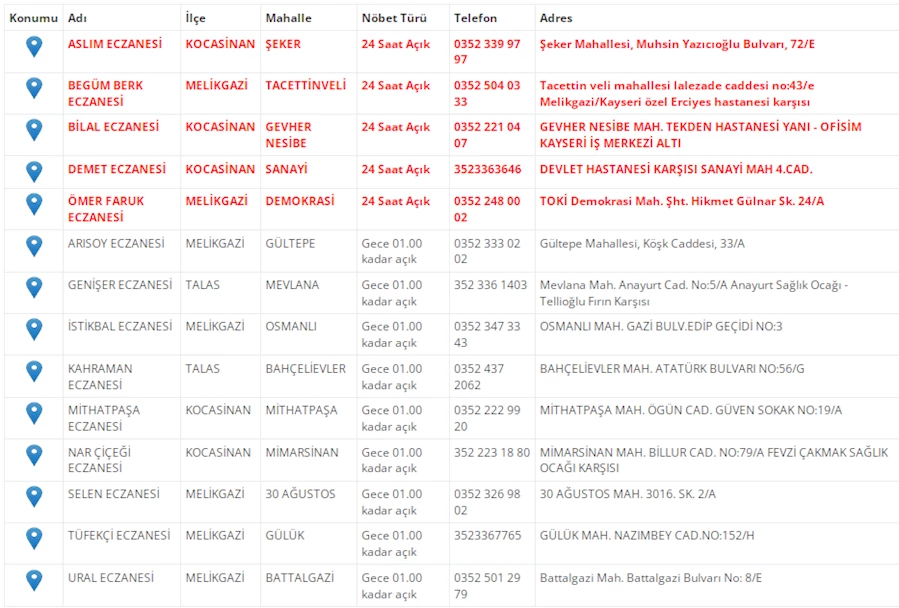 Kayseri'de vatandaşların acil sağlık ihtiyaçları için nöbetçi eczaneler önemli bir yere sahip. Kayseri’nin bugünkü nöbetçi eczanelerini sizler için derledik. 18 Eylül Perşembe nöbetçi eczaneler listesine buradan ulaşabilirsiniz. İşte 18 Eylül nöbetçi eczaneler…