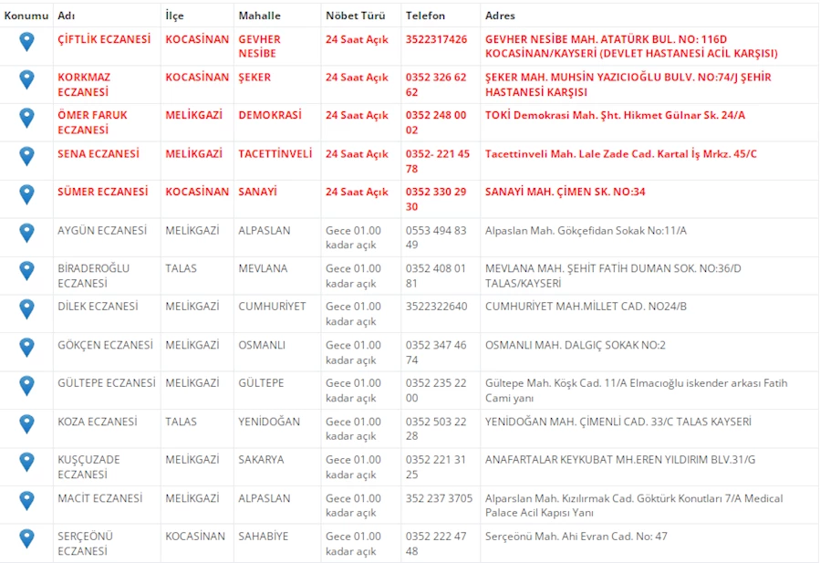 Kayseri'de vatandaşların acil sağlık ihtiyaçları için nöbetçi eczaneler önemli bir yere sahip. Kayseri’nin bugünkü nöbetçi eczanelerini sizler için derledik. 1 Nisan Salı nöbetçi eczaneler listesine buradan ulaşabilirsiniz. İşte 1 Nisan nöbetçi eczaneler…