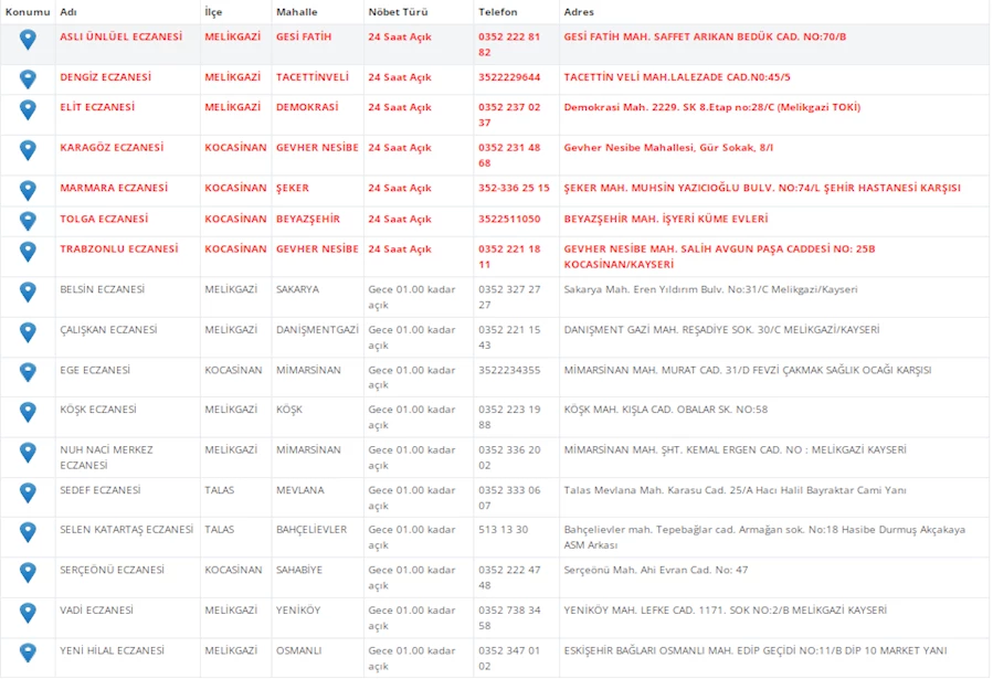 Kayseri'de vatandaşların acil sağlık ihtiyaçları için nöbetçi eczaneler önemli bir yere sahip. Kayseri’nin bugünkü nöbetçi eczanelerini sizler için derledik. 1 Şubat Cumartesi nöbetçi eczaneler listesine buradan ulaşabilirsiniz. İşte 1 Şubat nöbetçi eczaneler…