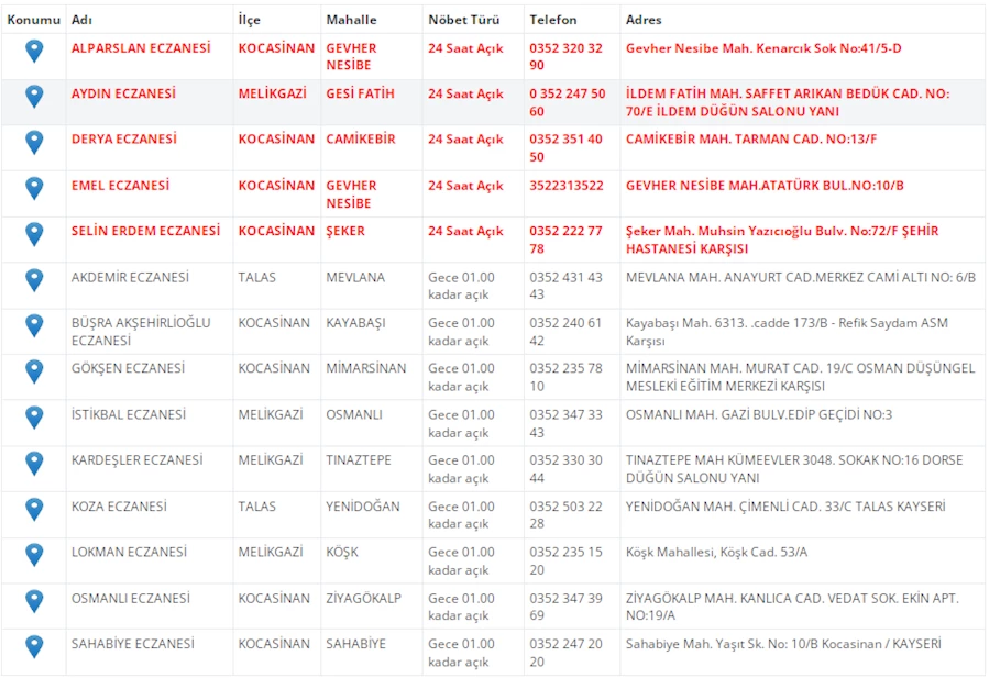 Kayseri'de vatandaşların acil sağlık ihtiyaçları için nöbetçi eczaneler önemli bir yere sahip. Kayseri’nin bugünkü nöbetçi eczanelerini sizler için derledik. 1 Temmuz Salı nöbetçi eczaneler listesine buradan ulaşabilirsiniz. İşte 1 Temmuz nöbetçi eczaneler…