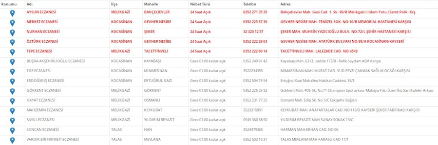 Kayseri'de vatandaşların acil sağlık ihtiyaçları için nöbetçi eczaneler önemli bir yere sahip. Kayseri’nin bugünkü nöbetçi eczanelerini sizler için derledik. 20 Nisan Pazar nöbetçi eczaneler listesine buradan ulaşabilirsiniz. İşte 20 Nisan nöbetçi eczaneler…