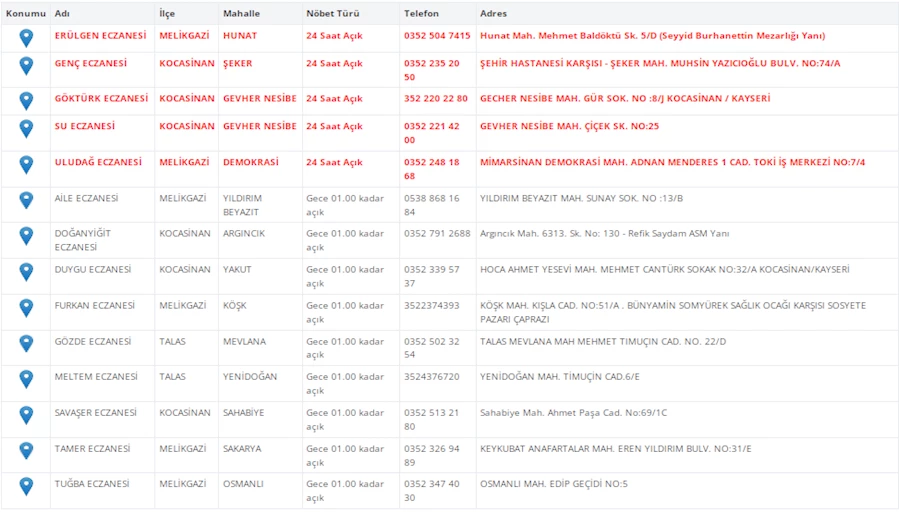 Kayseri'de vatandaşların acil sağlık ihtiyaçları için nöbetçi eczaneler önemli bir yere sahip. Kayseri’nin bugünkü nöbetçi eczanelerini sizler için derledik. 21 Ocak Salı nöbetçi eczaneler listesine buradan ulaşabilirsiniz. İşte 21 Ocak nöbetçi eczaneler…
