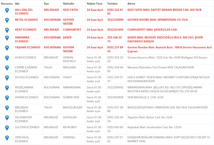 Kayseri'de vatandaşların acil sağlık ihtiyaçları için nöbetçi eczaneler önemli bir yere sahip. Kayseri’nin bugünkü nöbetçi eczanelerini sizler için derledik. 22 Nisan Salı nöbetçi eczaneler listesine buradan ulaşabilirsiniz. İşte 22 Nisan nöbetçi eczaneler…