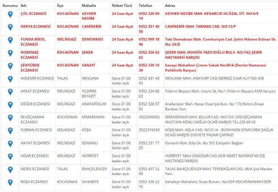 Kayseri'de vatandaşların acil sağlık ihtiyaçları için nöbetçi eczaneler önemli bir yere sahip. Kayseri’nin bugünkü nöbetçi eczanelerini sizler için derledik. 24 Kasım Pazartesi nöbetçi eczaneler listesine buradan ulaşabilirsiniz. İşte 24 Kasım nöbetçi eczaneler…