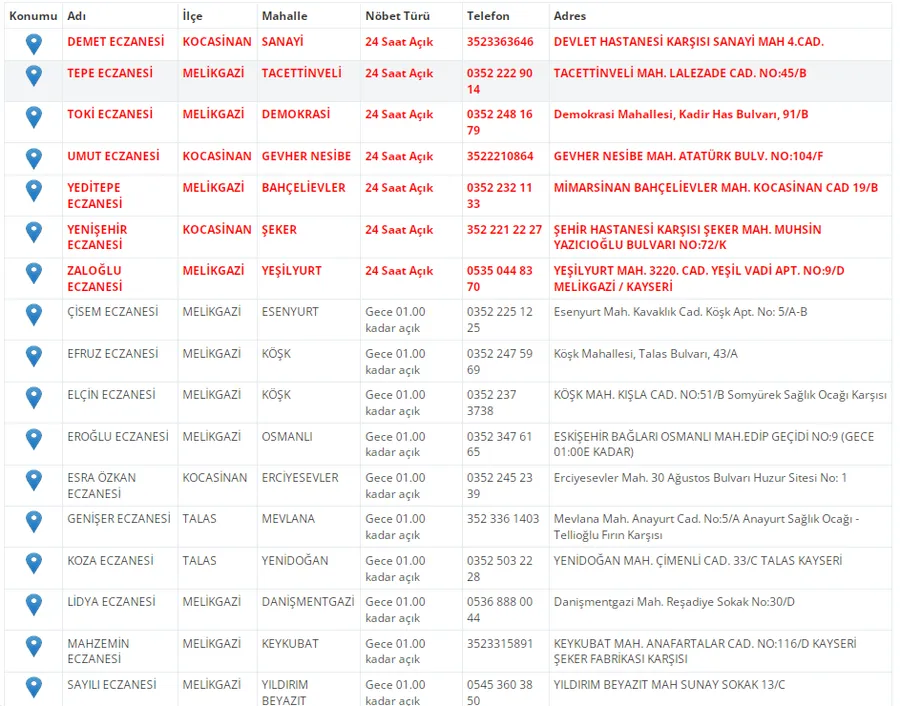 Kayseri'de vatandaşların acil sağlık ihtiyaçları için nöbetçi eczaneler önemli bir yere sahip. Kayseri’nin bugünkü nöbetçi eczanelerini sizler için derledik. 25 Ekim Cumartesi nöbetçi eczaneler listesine buradan ulaşabilirsiniz. İşte 25 Ekim nöbetçi eczaneler…
