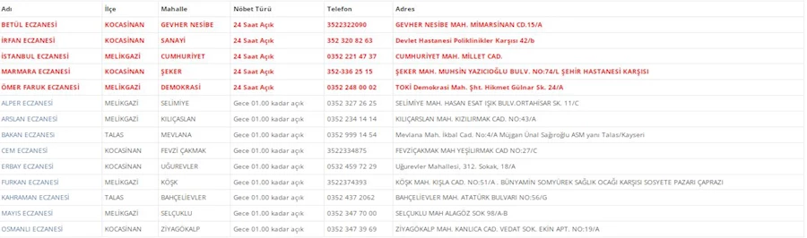 Kayseri'de vatandaşların acil sağlık ihtiyaçları için nöbetçi eczaneler önemli bir yere sahip. Kayseri’nin bugünkü nöbetçi eczanelerini sizler için derledik. 25 Kasım Pazartesi nöbetçi eczaneler listesine buradan ulaşabilirsiniz. İşte 25 Kasım nöbetçi eczaneler…