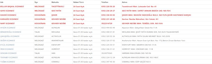 Kayseri'de bugünkü nöbetçi eczaneleri sizler için derledik. 5 Aralık 2025 Cuma nöbetçi eczaneler listesine haberimizden ulaşabilirsiniz. İşte Kayseri'deki nöbetçi eczaneler, Kayseri Haber Gazetesi'nin haberlerinde...