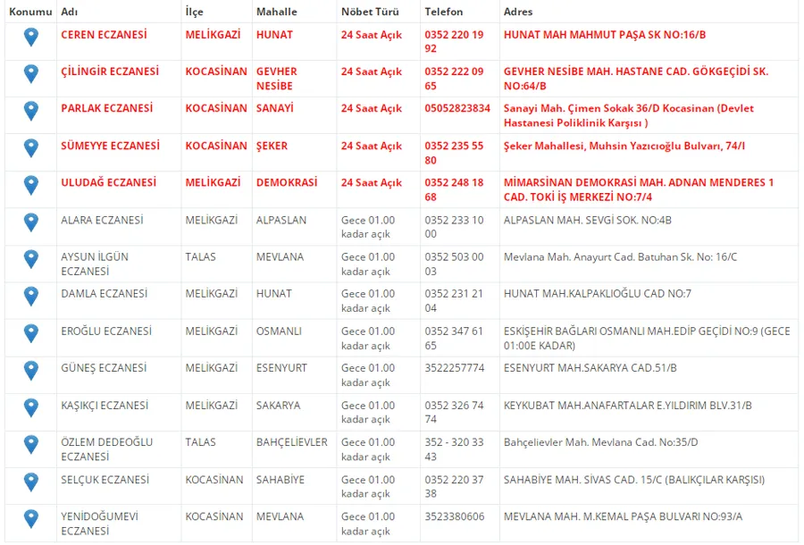 Kayseri'de vatandaşların acil sağlık ihtiyaçları için nöbetçi eczaneler önemli bir yere sahip. Kayseri’nin bugünkü nöbetçi eczanelerini sizler için derledik. 27 Kasım Perşembe nöbetçi eczaneler listesine buradan ulaşabilirsiniz. İşte 27 Kasım nöbetçi eczaneler…