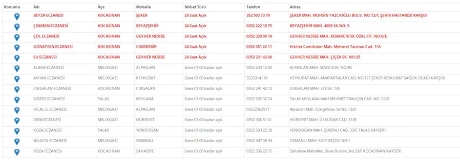 Kayseri'de vatandaşların acil sağlık ihtiyaçları için nöbetçi eczaneler önemli bir yere sahip. Kayseri’nin bugünkü nöbetçi eczanelerini sizler için derledik. 28 Ağustos Perşembe nöbetçi eczaneler listesine buradan ulaşabilirsiniz. İşte 28 Ağustos nöbetçi eczaneler…