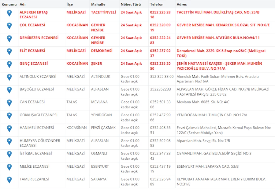 Kayseri'de vatandaşların acil sağlık ihtiyaçları için nöbetçi eczaneler önemli bir yere sahip. Kayseri’nin bugünkü nöbetçi eczanelerini sizler için derledik. 29 Nisan Salı nöbetçi eczaneler listesine buradan ulaşabilirsiniz. İşte 29 Nisan nöbetçi eczaneler…