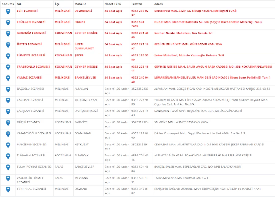 Kayseri'de vatandaşların acil sağlık ihtiyaçları için nöbetçi eczaneler önemli bir yere sahip. Kayseri’nin bugünkü nöbetçi eczanelerini sizler için derledik. 2 Ağustos Cumartesi nöbetçi eczaneler listesine buradan ulaşabilirsiniz. İşte 2 Ağustos nöbetçi eczaneler…