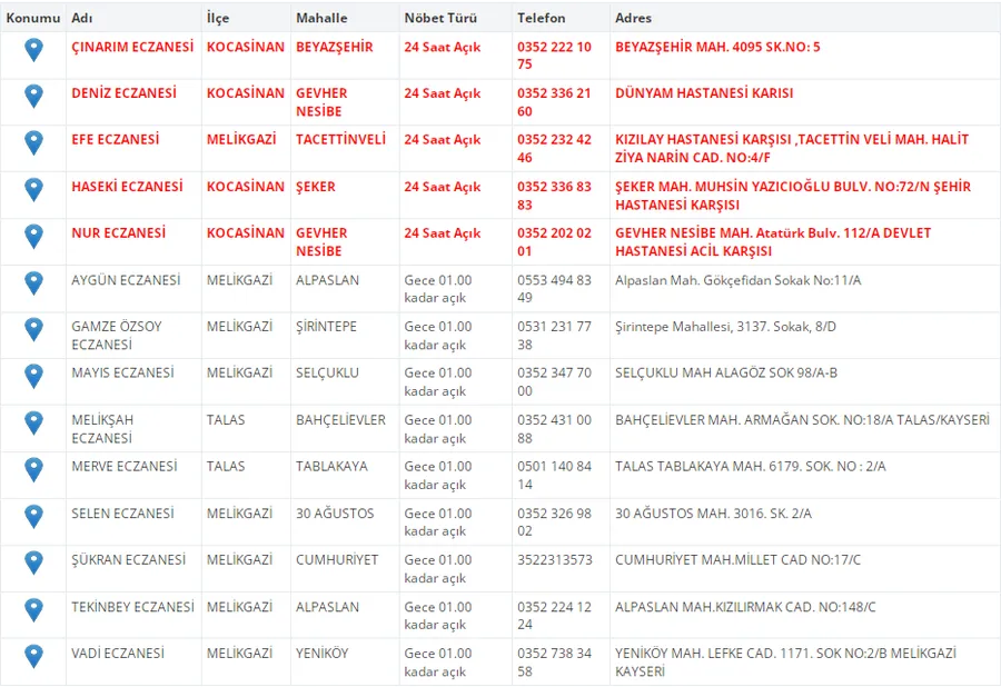 Kayseri'de vatandaşların acil sağlık ihtiyaçları için nöbetçi eczaneler önemli bir yere sahip. Kayseri’nin bugünkü nöbetçi eczanelerini sizler için derledik. 30 Kasım Pazar nöbetçi eczaneler listesine buradan ulaşabilirsiniz. İşte 30 Kasım nöbetçi eczaneler…