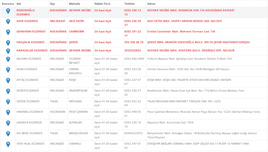 Kayseri'de vatandaşların acil sağlık ihtiyaçları için nöbetçi eczaneler önemli bir yere sahip. Kayseri’nin bugünkü nöbetçi eczanelerini sizler için derledik. 31 Mart Pazartesi nöbetçi eczaneler listesine buradan ulaşabilirsiniz. İşte 31 Mart nöbetçi eczaneler…