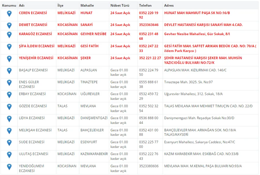 Kayseri'de vatandaşların acil sağlık ihtiyaçları için nöbetçi eczaneler önemli bir yere sahip. Kayseri’nin bugünkü nöbetçi eczanelerini sizler için derledik. 3 Ekim Cuma nöbetçi eczaneler listesine buradan ulaşabilirsiniz. İşte 3 Ekim nöbetçi eczaneler…