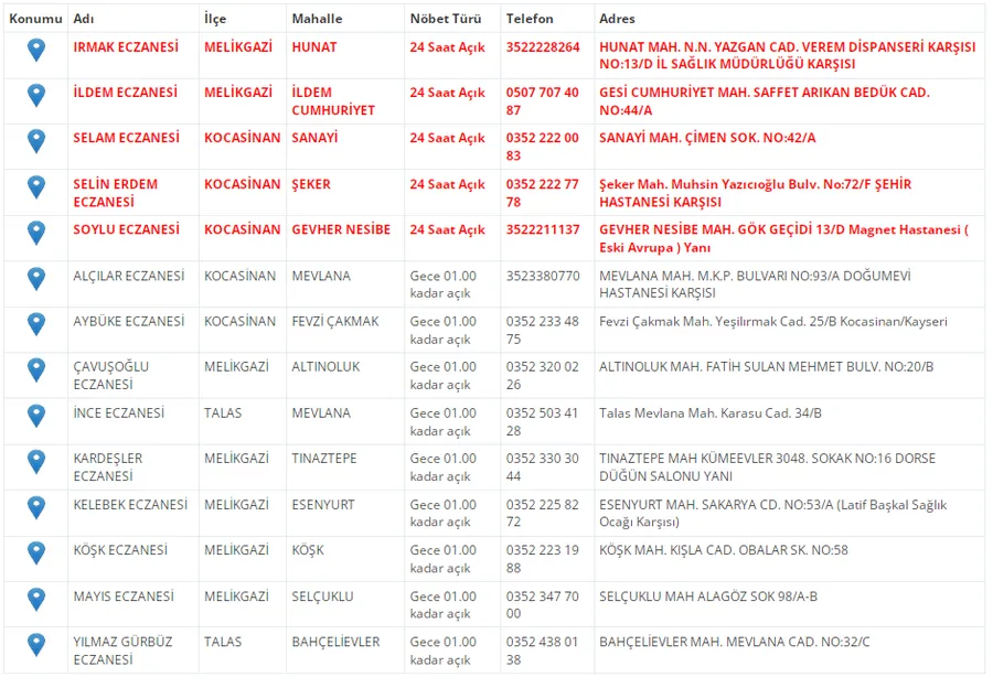 Kayseri'de bugünkü nöbetçi eczaneleri sizler için derledik. 7 Aralık 2025 Pazar nöbetçi eczaneler listesine haberimizden ulaşabilirsiniz. İşte Kayseri'deki nöbetçi eczaneler, Kayseri Haber Gazetesi'nin haberlerinde...