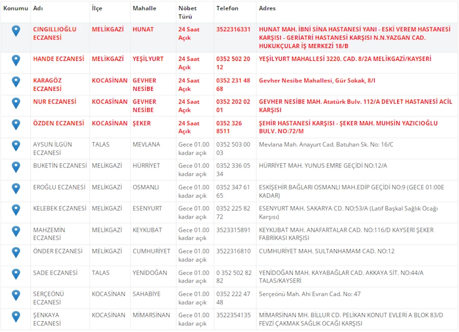 Kayseri'de vatandaşların acil sağlık ihtiyaçları için nöbetçi eczaneler önemli bir yere sahip. Kayseri’nin bugünkü nöbetçi eczanelerini sizler için derledik. 4 Temmuz Cuma nöbetçi eczaneler listesine buradan ulaşabilirsiniz. İşte 4 Temmuz nöbetçi eczaneler…
