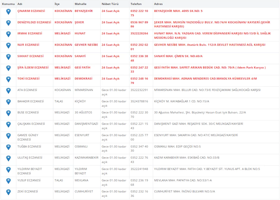 Kayseri'de vatandaşların acil sağlık ihtiyaçları için nöbetçi eczaneler önemli bir yere sahip. Kayseri’nin bugünkü nöbetçi eczanelerini sizler için derledik. 5 Nisan Cumartesi nöbetçi eczaneler listesine buradan ulaşabilirsiniz. İşte 5 Nisan nöbetçi eczaneler…