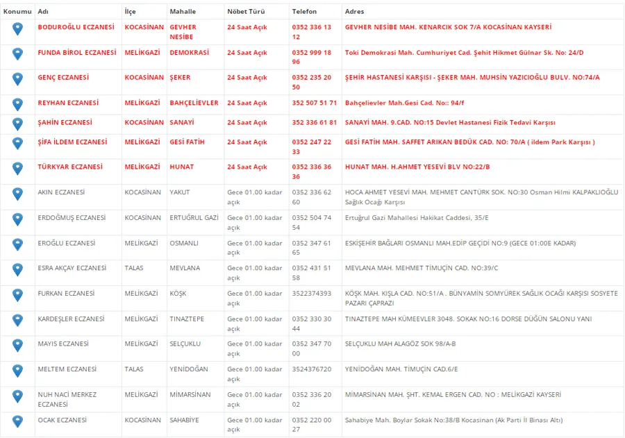 Kayseri'de vatandaşların acil sağlık ihtiyaçları için nöbetçi eczaneler önemli bir yere sahip. Kayseri’nin bugünkü nöbetçi eczanelerini sizler için derledik. 6 Aralık Cumartesi nöbetçi eczaneler listesine buradan ulaşabilirsiniz. İşte 6 Aralık nöbetçi eczaneler…