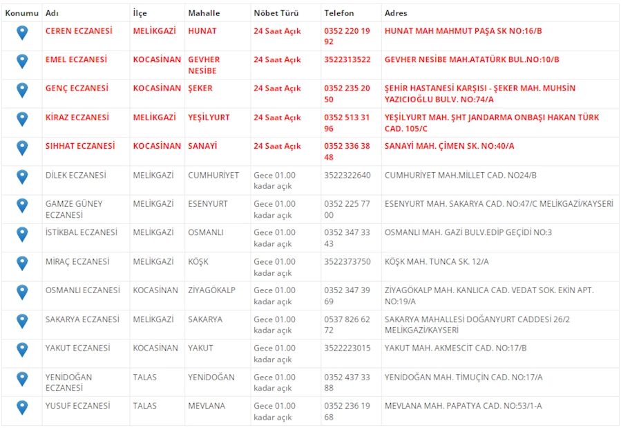 Kayseri'de vatandaşların acil sağlık ihtiyaçları için nöbetçi eczaneler önemli bir yere sahip. Kayseri’nin bugünkü nöbetçi eczanelerini sizler için derledik. 6 Mart Perşembe nöbetçi eczaneler listesine buradan ulaşabilirsiniz. İşte 6 Mart nöbetçi eczaneler…