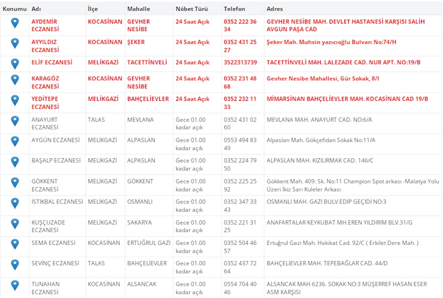 Kayseri'de vatandaşların acil sağlık ihtiyaçları için nöbetçi eczaneler önemli bir yere sahip. Kayseri’nin bugünkü nöbetçi eczanelerini sizler için derledik. 6 Ocak Pazartesi nöbetçi eczaneler listesine buradan ulaşabilirsiniz. İşte 6 Ocak nöbetçi eczaneler…