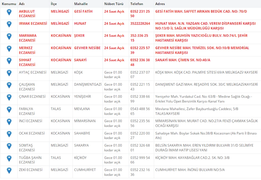 Kayseri'de vatandaşların acil sağlık ihtiyaçları için nöbetçi eczaneler önemli bir yere sahip. Kayseri’nin bugünkü nöbetçi eczanelerini sizler için derledik. 8 Ağustos Cuma nöbetçi eczaneler listesine buradan ulaşabilirsiniz. İşte 8 Ağustos nöbetçi eczaneler…