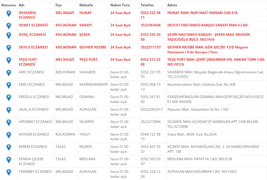 Kayseri'de vatandaşların acil sağlık ihtiyaçları için nöbetçi eczaneler önemli bir yere sahip. Kayseri’nin bugünkü nöbetçi eczanelerini sizler için derledik. 8 Nisan Salı nöbetçi eczaneler listesine buradan ulaşabilirsiniz. İşte 8 Nisan nöbetçi eczaneler…