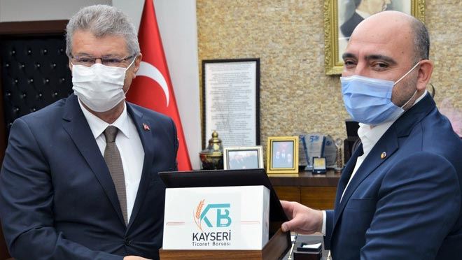 Ziyaretin sonunda Kayseri Ticaret Borsası Başkanı Recep Bağlamış Başkan Akay’a, Kayseri’de 2019 yılında tutar bazında en çok tescil yaptıran üye ödülünü takdim etti.