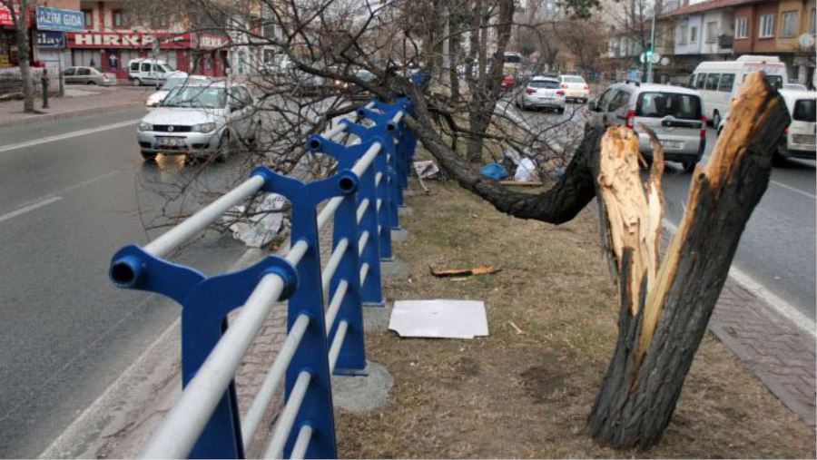 Kayseri'de önceki gün etkili olan ve zaman zaman hızı 65 kilometreye kadar yükselen rüzgar, hayatı olumsuz etkilerken, çatı ve ağaçlara da zarar verdi.