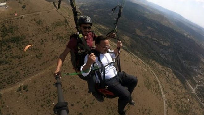 Kayseri Valisi Gökmen Çiçek, yamaç paraşütü ile uçuş gerçekleştirerek, kenti gökyüzünden izledi.