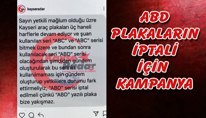 KAYSERİ´de sosyal medya üzerinden, kentte yakın zamanda geçilecek olan ´ABD´ harf grubu serisi araç plakalarının kullanılmaması için kampanya başlatıldı.