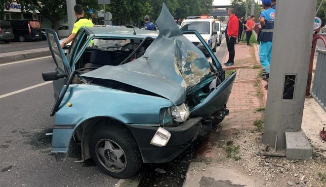 Kayseri´de aşırı hız nedeniyle meydana gelen kazada aşırı hızlı olduğu ileri sürülen otomobil aydınlatma direğine çarptı. Kaza nedeniyle otomobilin ön tarafı kağıt gibi ezilirken, yaralanan sürücü hastaneye kaldırıldı.