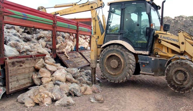 Ekipler tarafından el konulan sakatatlar, iş makineleri yardımıyla imha edildi.