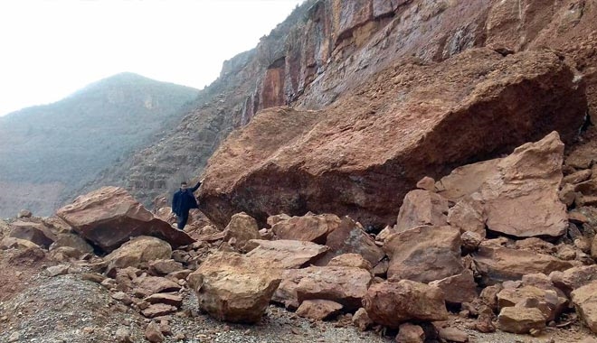 Kayseri´nin Yahyalı ilçesinde, etkili olan yağış sonrasında sel baskınları yaşanırken bazı bölgelerde heyelan meydana geldi. Çamlıca Mahallesi´ne giden yola kaya parçaları düştü.