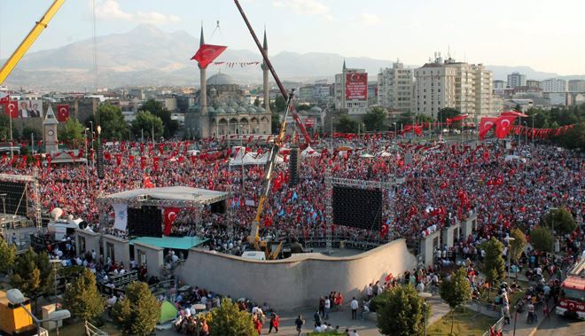 Demokrasi nöbetinin son gününde on binlerce insan Kayseri´de Cumhuriyet Meydanı´nı tıklım tıklım doldurdu.