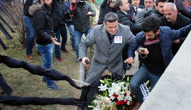Şehit cenazesine katılan bir grup, CHP İl Başkanlığı tarafından gönderilen yeniden gönderilen çelengi parçaladı. Şehit Polis Yasin İke´nin kızkardeşi, "O çelengi burada istemiyorum" şeklinde tepki gösterdi.