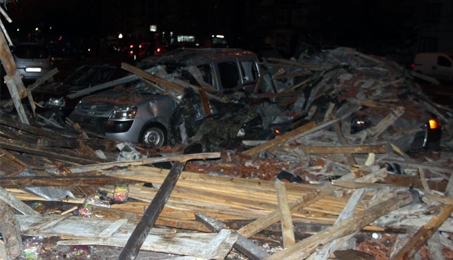 Kayseri´de akşam saatlerinde etkili olan şiddetli rüzgar, cami minaresini yıktı. Talas ilçesinde ise çatıdan kopan parçalar araçların üzerine düşerken, sokaktaki vatandaşlar büyük panik yaşadı.