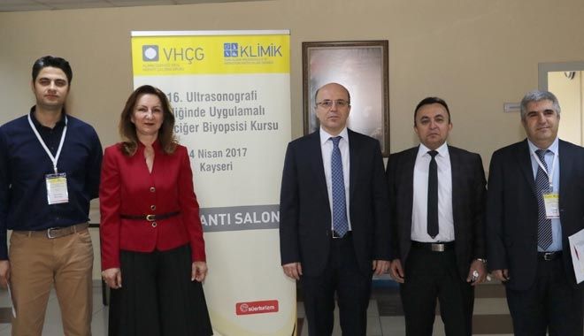 Kayseri´de Kayseri Eğitim ve Araştırma Hastanesi, Erciyes Üniversitesi ve Türk Klinik Mikrobiyoloji ve İnfeksiyon Hastalıkları Derneği (KLİMİK) işbirliğiyle ultrasonografi eşliğinde uygulamalı karaciğer biyopsisi kursu düzenlendi. Kayseri Eğitim ve Araştırma Hastanesi ev sahipliğinde Enfeksiyon Hastalıkları ve Klinik Mikrobiyoloji uzmanlarının, kendi merkezlerinde ve kendi sorumluluklarında karaciğer biyopsisi yapmaya özendirilmesi, onlara bu konuda özgüven kazandırılması ve kronik viral hepatit hastalarının izlenip tedavi edilmelerinin yaygınlaştırılması amacıyla düzenlenen kursa Kayseri Eğitim Araştırma Hastanesi ve Erciyes Üniversitesi Enfeksiyon Hastalıkları ve Klinik Mikrobiyoloji uzmanları katıldı.