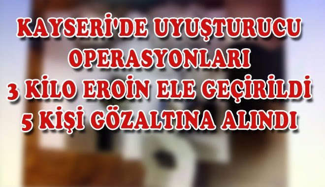Kayseri İl Emniyet Müdürlüğü Uyuşturucu ile Mücadele Şube Müdürlüğü ekipleri tarafından yapılan 2 ayrı operasyonda çeşitli miktarlarda uyuşturucu madde ele geçirilirken, 5 kişi gözaltına alındı.