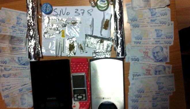 Öte yandan uyuşturucu madde ticareti yaptıkları değerlendirilen Ç. Ş. Ve S. Ş.´nin ikametlerinde yapılan aramalarda dolandırıcılıkta kullanıldığı öğrenilen ve geçersiz olan 184 adet 100 TL, 1 adet alüminyum folyoya sarılı satışa hazır vaziyette 0,50 gram gelen metamfetamin maddesi, 1 adet sigara ile karışık vaziyette 0,75 gram gelen sentetik kannabioid, 3 adet sigara ile karışık halde 2,25 gram gelen sentetik kannabioid, 1adet cam şişe içerisinde 0,85 gram gelen metamfetamin maddesi,2 adet alüminyum folyo, 3 adet defter kağıdına ve 2 adet alüminyum folyoya sarılı vaziyette 2,55 gram gelen sentetik kannabionid, iki ucu yakılmak suretiyle yapıştırılmış pipet içerisinde 0,20 gram gelen eroin maddesi, uyuşturucu madde tartımında kullanıldığı değerlendirilen 3 adet hassas terazi ele geçirildi.