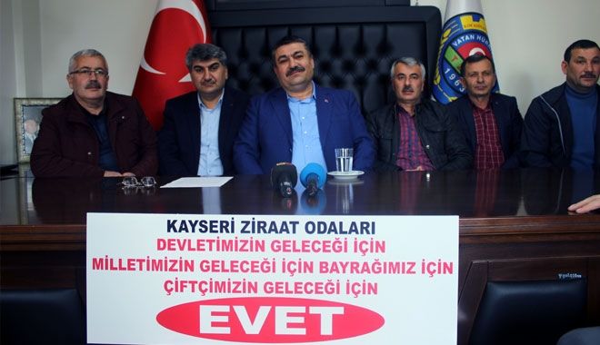 Kayseri Ziraat Odaları İl Koordinasyon Kurulu Başkanı Abdulkadir Güneş, düzenlediği basın toplantısında, Başkanlık sistemi için yapılacak olan referandumda Ziraat Odaları olarak ´Evet´ oyunu vereceklerini açıkladı.