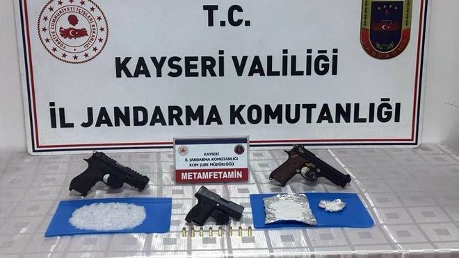 Edinilen bilgiye göre, Kayseri İl Jandarma Komutanlığı’na bağlı İstihbarat Şube Müdürlüğü ekipleri, T.G.’nin İstanbul'dan temin ettiği uyuşturucu maddeyi Anbar Mahallesi'ndeki işletmede sattığı bilgisine ulaştı. Kocasinan Merkez Jandarma Karakol Komutanlığı ve İstihbarat Şube Müdürlüğü ekipleri tarafından narkotik ve bomba köpekleri eşliğinde Anbar Mahallesi’ndeki işletmeye operasyon düzenlendi. T.G.’nin üzerinde ve iş yerinde yapılan aramada piyasa değeri 160 bin TL olan 320 gram uyuşturucu madde, 3 adet el yapımı ruhsatsız tabanca, 3 adet şarjör ile 9 adet tabanca fişeği ile geçirildi. T.G., jandarma ekipleri tarafından gözaltına alındı.