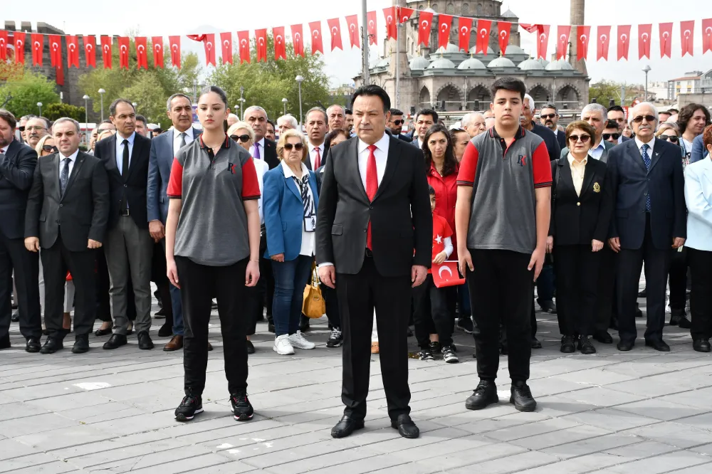 23 Nisan Ulusal Egemenlik ve Çocuk Bayramı Kayseri'de İl Milli Eğitim Müdürlüğü tarafından Atatürk büstüne konulan çelenkle kutlandı.