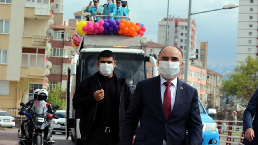Vali Şehmus Günaydın ve beraberindekiler 23 Nisan kutlamaları kapsamında, Cumhuriyet Meydanı’ndan yola çıkarak mahallelerde çocukların bayramını kutladı. Üstü açık otobüsle mehter takımı eşliğinde cadde ve sokaklarda gezen konvoy, marşlar ve bayraklarla vatandaşları selamladı. Vatandaşlar da pencere ve balkonlardan konvoya alkışlarla eşlik etti. İmkanlar dahilinde bayramı en iyi şekilde kutlamaya özen gösterdiklerini ifade eden Vali Günaydın, “Bugün, tarihimizin dönüm noktalarından biri olan Türkiye Büyük Millet Meclisi’mizin kuruluşunun 100. yıldönümü. Büyük bir gurur ve coşkuyla kutluyoruz. Tabi içinde bulunduğumuz süreç itibariyle de 23 Nisan etkinliklerimizi arzu ettiğimiz seviyede kutlayamasak da yine de imkanlar içerisinde belediyelerimiz, kaymakamlıklarımız en güzel şekilde kutlamak için çaba gösteriyorlar. Bugün özellikle kaymakam ve ilçe belediye başkanı arkadaşlarımızın çalışmalarıyla 23 Nisan’da doğan çocuklarımızın evleri ziyaret ediliyor, doğum günlerini kutluyoruz. Ailelerimizi ziyaret ediyoruz, vefa destek grubumuz yine vatandaşlarımızın ve çocuklarımızın odalarını süslemek için kırtasiye taleplerini de karşılıyor. İmkanlar ölçüsünde en iyi şekilde kutlamaya çalışıyoruz. Gazi Mustafa Kemal Atatürk, 23 Nisan tarihini geleceğimizin teminatı çocuklarımıza armağan ederken onlara ne kadar değer verdiğini ortaya koymuştur. Bizler de ülkemizin ve milletimizin daha ileri noktaya taşınması için çocuklarımıza güveniyoruz, onları geleceğe hazırlıyoruz. Onlar bizim, milli egemenliğin korunması, yaşatılması anlamında da temel güç kaynağımız çocuklarımız. Bizler; eğitimden spora bir çok alanda çocuklarımızı en iyi şekilde yetiştirmek için her türlü imkanımızı seferber ediyoruz. İlimizde de gerek valiliğimiz gerek büyükşehir belediyemiz, ilçe belediyelerimiz, kamu kurum ve kuruluşlarımız olsun çocuklarımızın yetişmesi, ileriye hazırlanması noktasında önemli projelere imza atıyorlar. Bugün uluslararası alanda birçok başarıya imza atmış çocuklarımız, gençlerimiz var. Tabi ki biz bunların sayısını çoğaltmak istiyoruz. Bunun için de projeler geliştiriyoruz. Çocuklarımızın kaliteli eğitim alması için, spor, kültürel, sanat alanında olsun birçok alanda kurslar açıyoruz ve çocuklarımızı geleceğe hazırlıyoruz” diye konuştu. Vali Günaydın ayrıca korona virüsle mücadelede evlerinde kalarak kurallara uyan vatandaşlara teşekkürlerini iletti.
