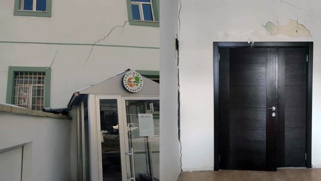 Depremden etkilenen belediye binasının duvarlarında ve köşe noktalarında derin çatlaklar oluştu.