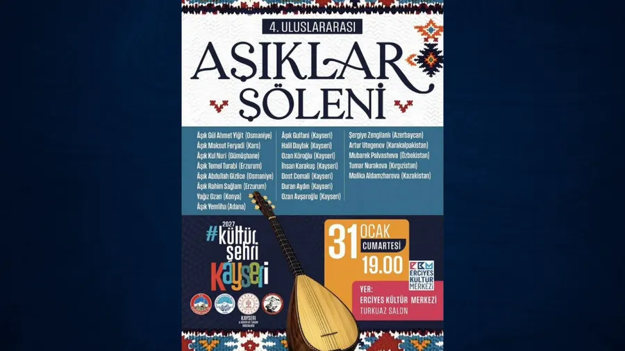 Kayseri Valiliği, Kayseri Büyükşehir Belediyesi, Kayseri Kültür ve Turizm Müdürlüğü ile Kayseri Halk Ozanları Kültür Derneği iş birliğinde düzenlenen 4. Uluslararası Aşıklar Şöleni, sadece bir konser değil; kültürel bir yolculuk vadediyor. Azerbaycan’dan Kazakistan’a, Kars’tan Erzurum’a kadar uzanan geniş bir coğrafyanın sesi, Kayseri’de yankılanacak.