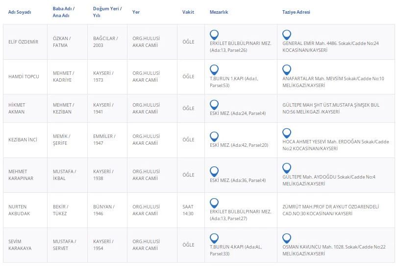 Kayseri’de bugün vefat edenler kimler? Kayseri’de bugün 7 vatandaşımızı kaybettik. İşte 10 Temmuz Kayseri'de vefat edenler. Kayseri son dakika haberleri Kayseri Haber'in bülteninde...