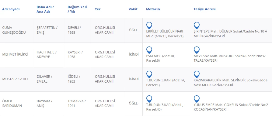 Kayseri’de bugün 4 vatandaşımızı kaybettik. Kayseri’de bugün vefat edenler kimler?