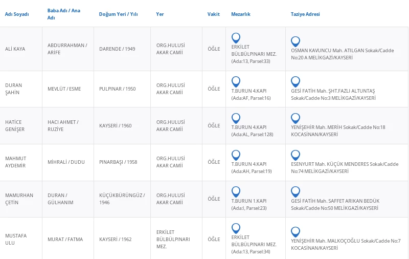 Kayseri’de bugün 6 vatandaşımızı kaybettik. Kayseri’de bugün vefat edenler kimler?