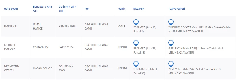 Kayseri’de bugün 3 vatandaşımızı kaybettik. Kayseri’de bugün vefat edenler kimler?